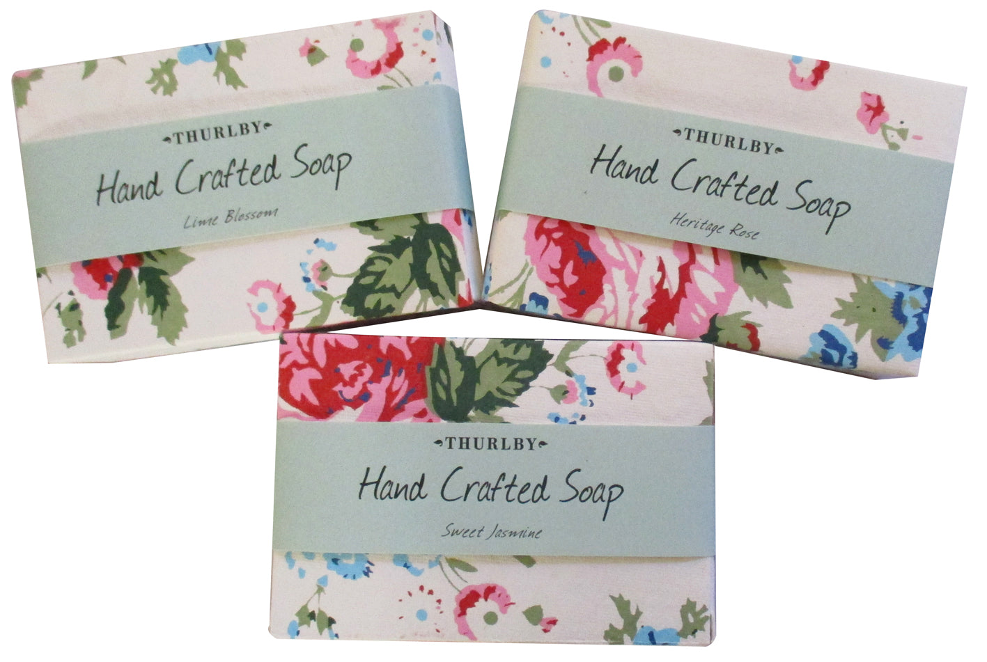 Produced by artisans using traditional methods, these handmade soaps are hand wrapped in our new Vintage Rose fabric. Available in 3 fragrances - Lime Blossom, Heritage Rose and Sweet Jasmine. 170g net weight.