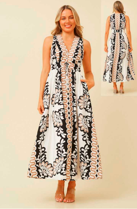 Ellie is a lovely 100% silky Viscose dress with v neck line and tie up waist at the front and elasticized back waist band, it is the perfect blend of casual yet classy.