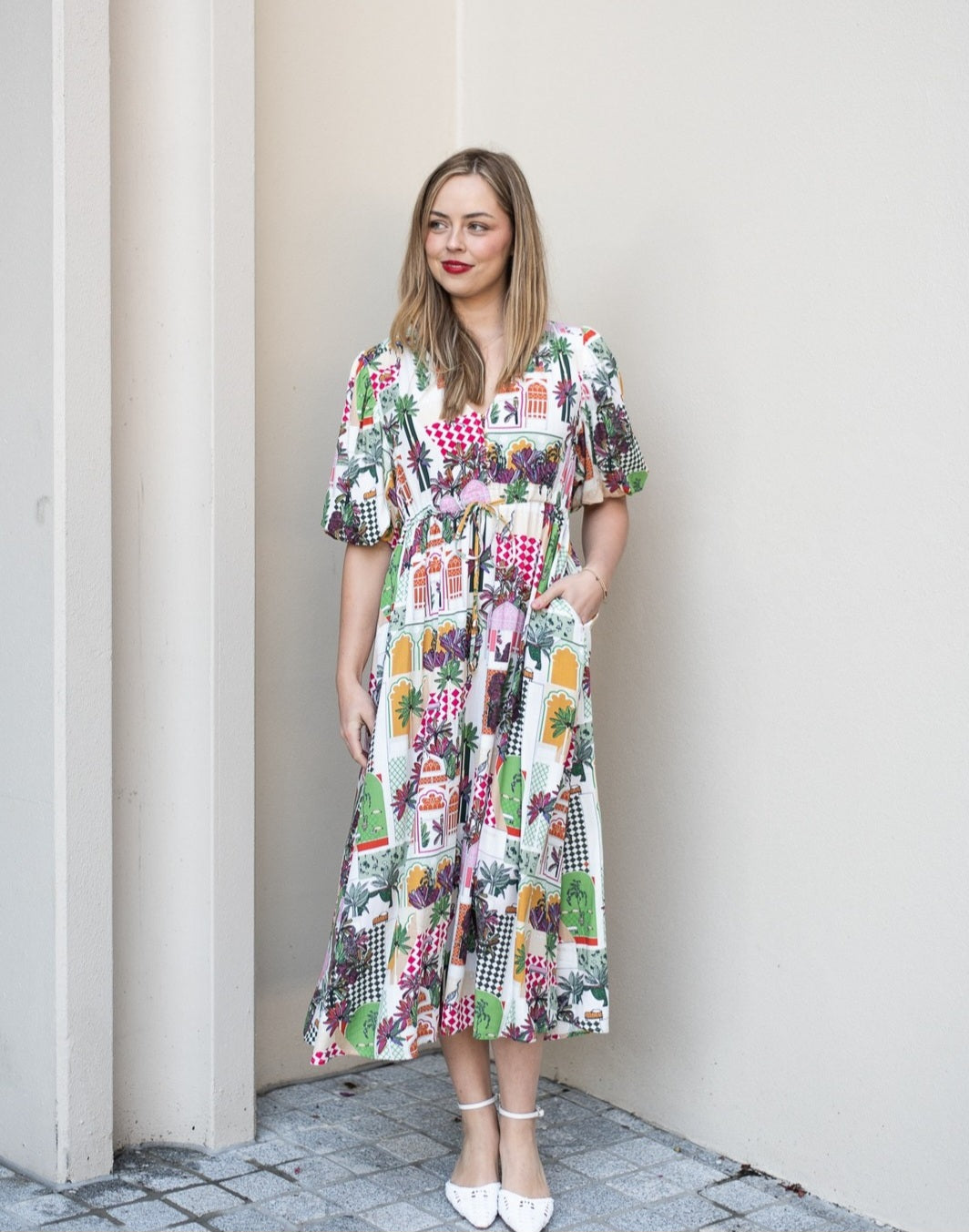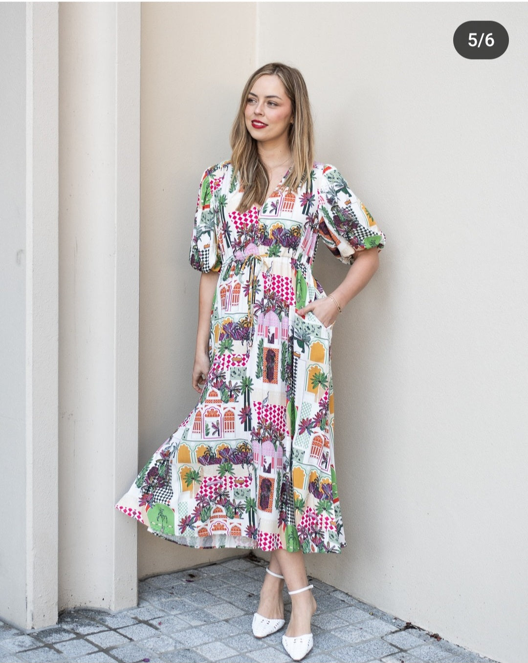 Freya is a lovely bamboo/rayon dress with v neck line and tie up waist at the front, it gas lovely bubble sleeves and can be dressed up with heels or down with sandals. It is easy to wear and the lightweight fabric is very appealing. This dress is a fave of ours.