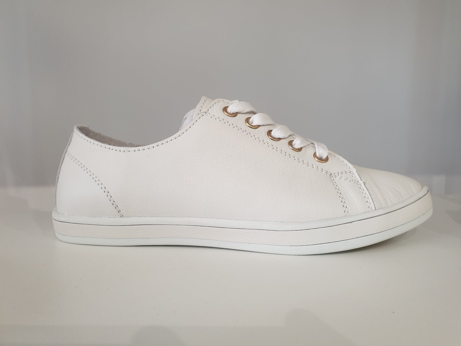 Greenie with a leather upper and lining this shoe is made for comfort.